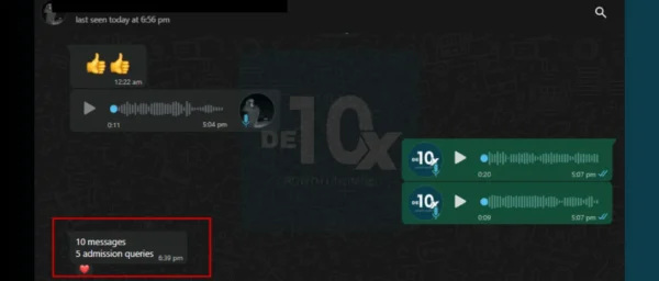 Verified Admission Queries: 5 (confirmed by client on WhatsApp)